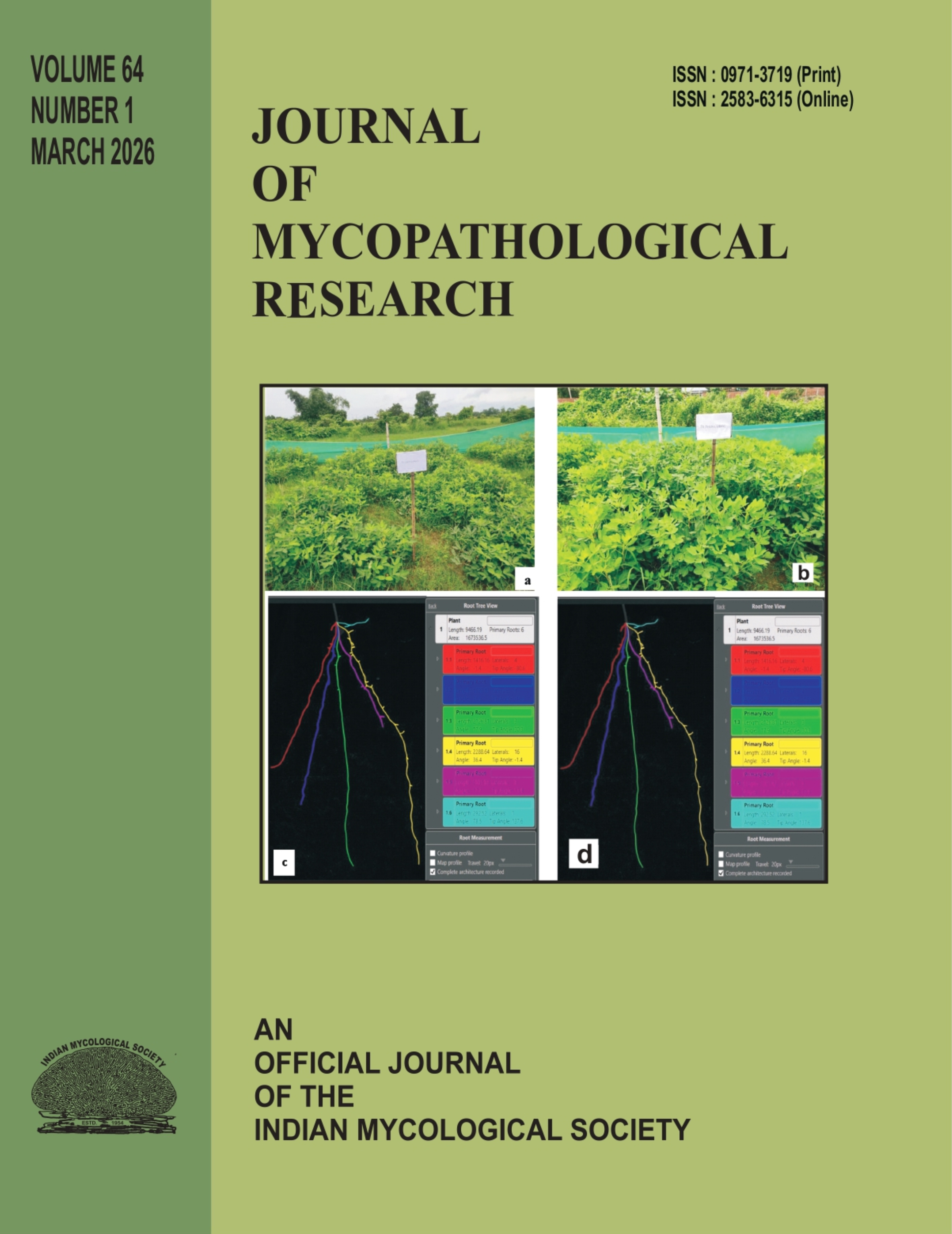 Journal of Mycopathological Research is a peer reviewed, refereed, International Journal open to contributions of merit dealing with all aspects of basic and experimental mycology, plant pathology, virology, bacteriology, biotechnology, agriculture and allied disciplines. It is one of the few journals dealing with the specific subject being published from India. It has a good coverage and publishes papers regularly from all over India and abroad. The Eastern and North- Eastern scientists and researchers are really benfitted by this publication. This journal is NAAS rated (Impact Point : 5.11), UGC-CARE enlisted, ICI indexed.
